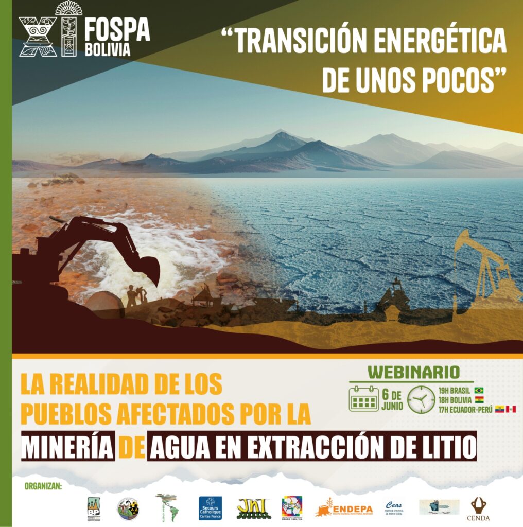 Invitación al Webinar: Transición energética para unos pocos: la realidad de los pueblos que conviven con el litio”. “En nombre de la transición se genera saqueo del agua. Saqueo de ríos, de humedales. Saqueo de montañas. Saqueos en inglés, en chino, en alemán, en coreano y en español. Saqueo que seca, que rompe, que […]
