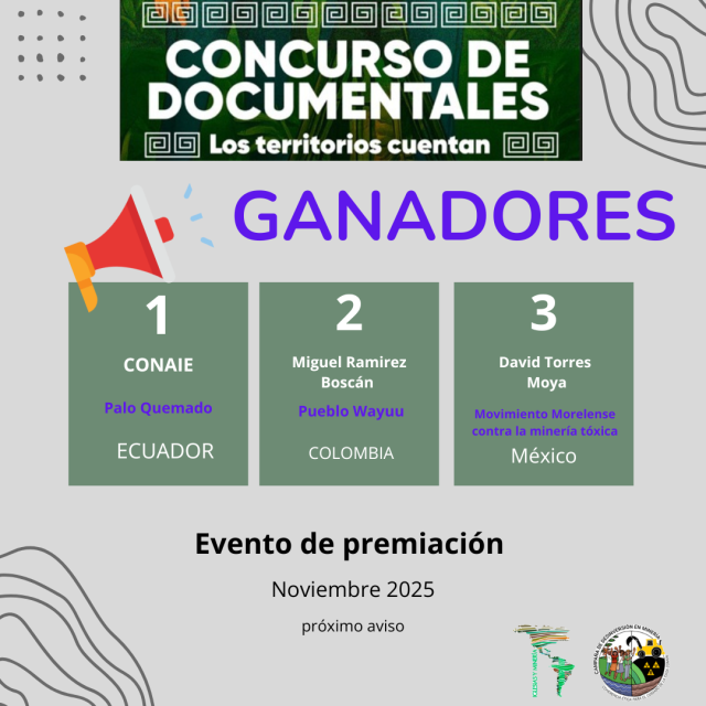 🥳EL concurso, organizado por la Red Iglesias y Minería, gracias al apoyo de MISEREOR, tenía como objetivo fortalecer la comunicación en los territorios y los procesos en resistencia y en defensa de las alternativas de los pueblos frente a la minería.