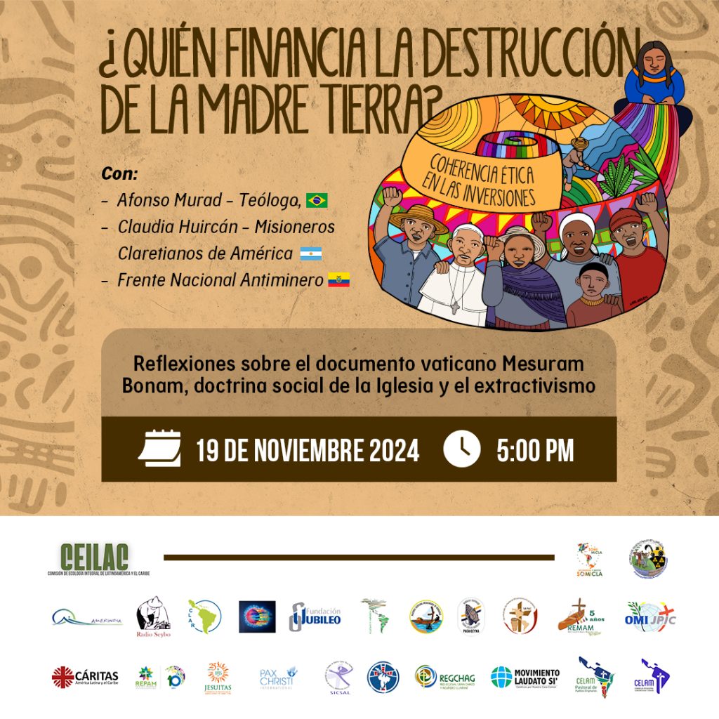WEBINAR: ¿Quién financia la destrucción de la madre Tierra? Reflexiones desde el documento vaticano Mesuram Bonam, la Doctrina Social de la Iglesia y el extractivismo